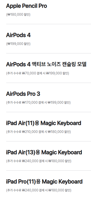 - 맥북 또는 iPad 구매 시 에어팟 등 액세서리 제공