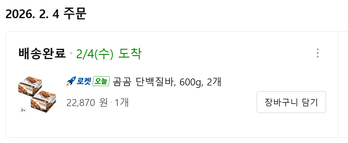 - ✔️ 단백질 간식 1종 (계란 or 단백질바)